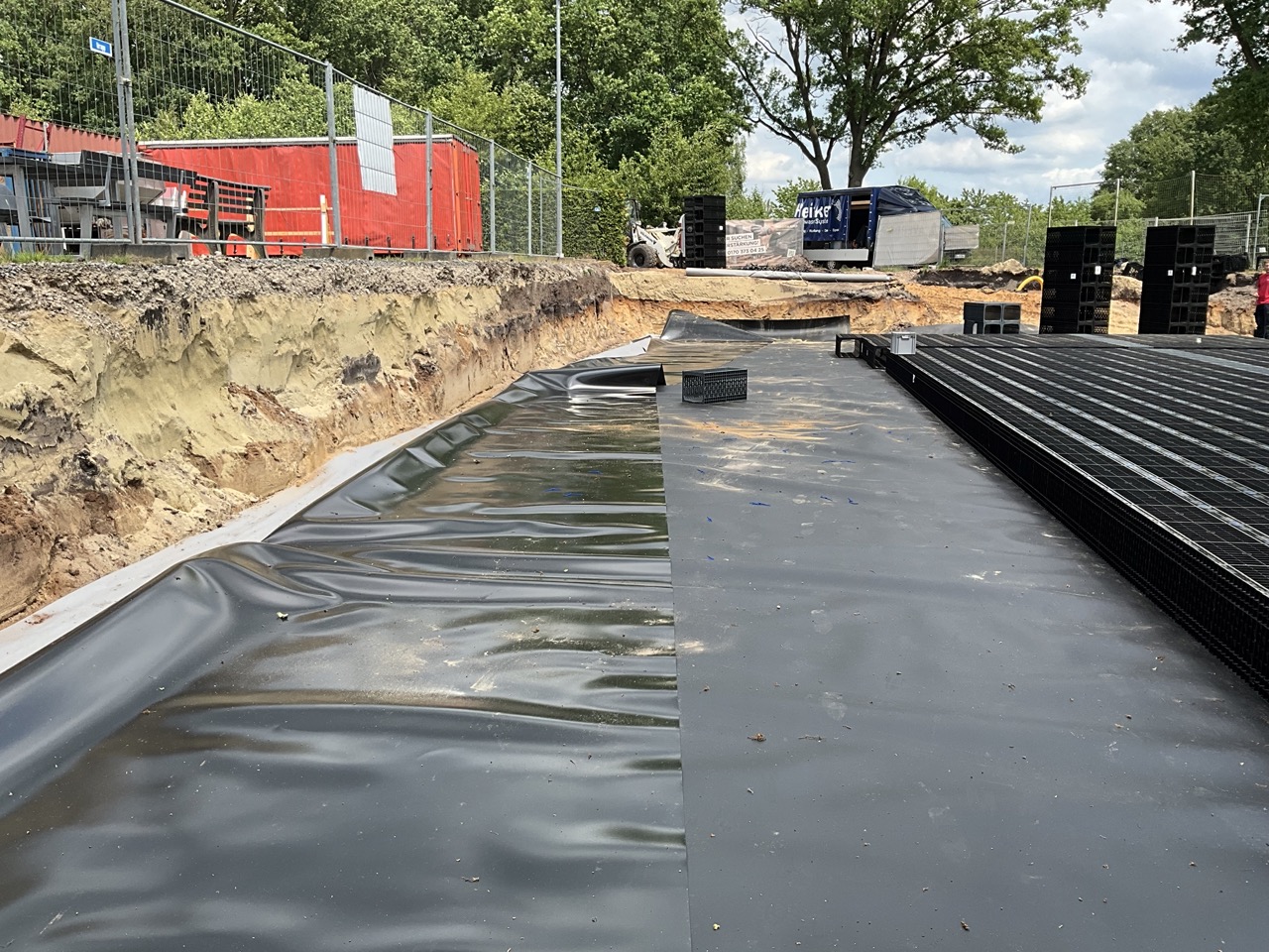 Im Rahmen der Neugestaltung der Langen Straße / Kolkstraße in Diepholz wurde das anfallende Niederschlagswasser der angrenzenden Dachflächen in Baum- und Kiesrigolen zur Versickerung gebracht und somit vom Regenwasserkanal abgekoppelt.